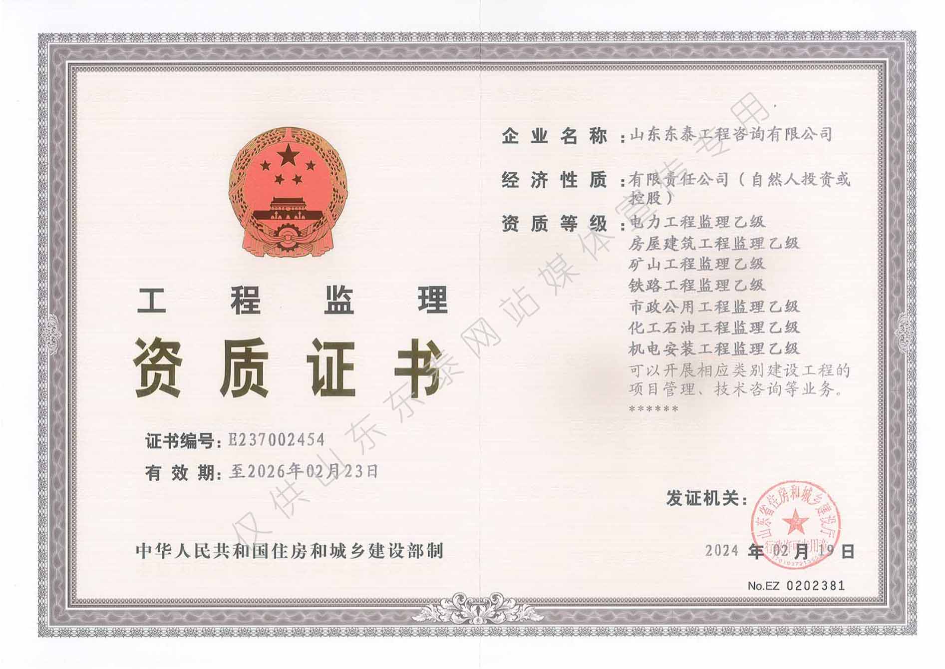 省住建廳監理乙級(市政、房建、鐵路、電力、礦山、機電安裝、化工石油)